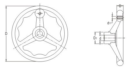 JS.101009 波紋圓輪緣手輪 顏色:亮光黑 材質:酚醛樹脂(膠木) 用途:適用于各類機械裝備的操作調節(jié),多用于磨床、銑床等 特性:光澤感強,外形美觀,手柄可轉動。耐高溫、溶劑、機油及其他化學試劑。鋼制鐵芯表面處理防銹能力強。標準化使用,安裝簡便