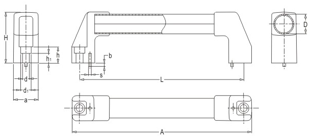 JS.104007 不銹鋼方拉手 顏色:銀色 材質(zhì):不銹鋼管+鋅鋁合金、增強尼龍 用途:適用于各類數(shù)控機械防護門 特性:啞光飾面、外形美觀、機械強度高、堅固耐用、標準化使用、安裝簡便